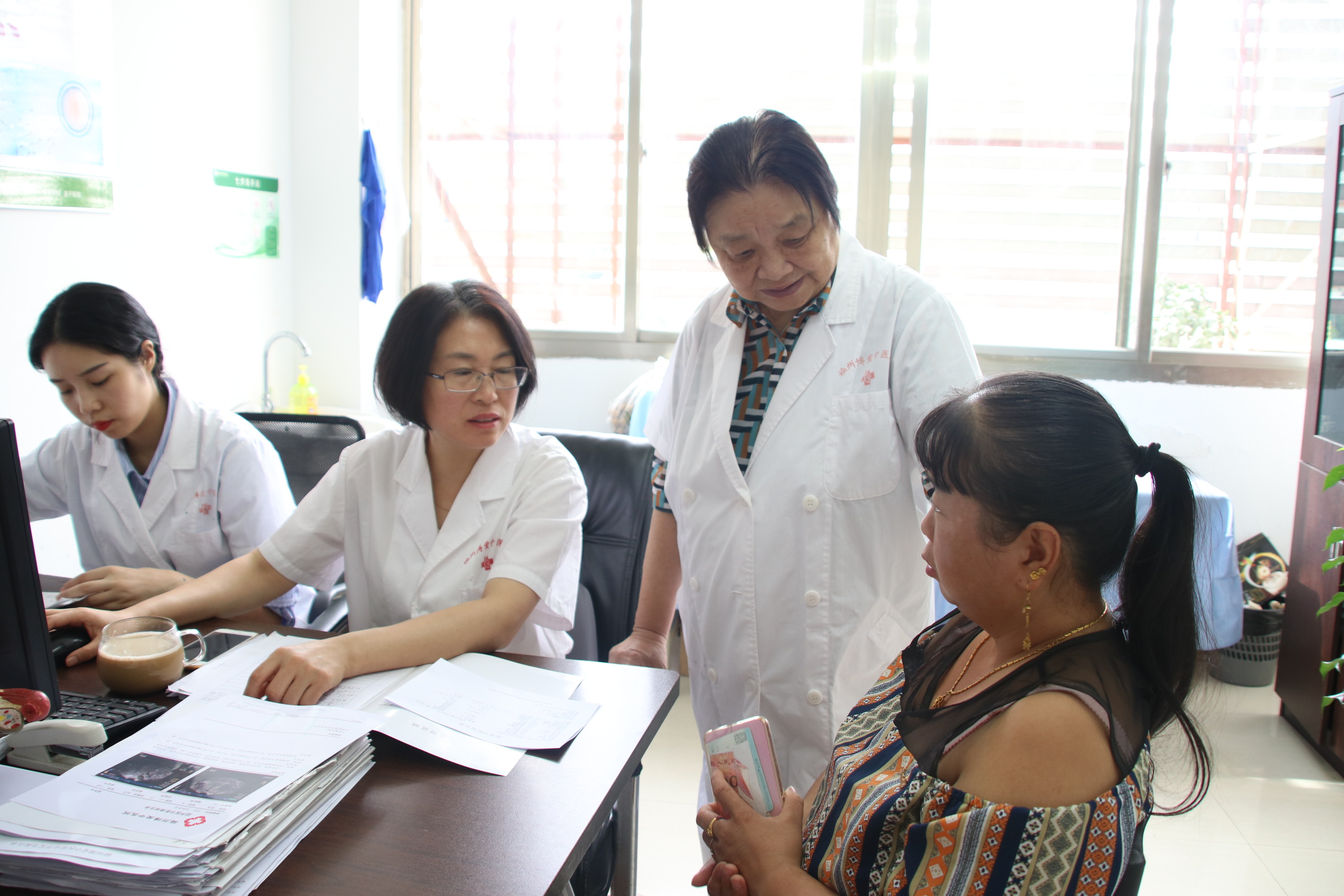 在会诊期间,众多患者都早已在家人的陪同下来到了院内就诊,院内会诊氛围火热。而中华医学欧阳宝英教授也准时到院,立即与博爱专家团展开了忙碌的会诊。